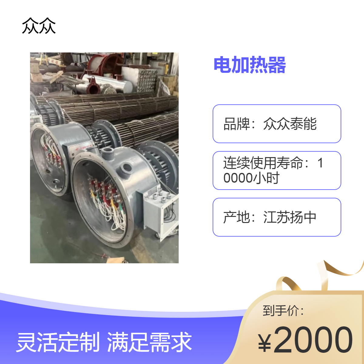 众众泰能牌的众众防爆电加热器水加热炉浴室水电加热器配套定制厂家产品:估价:2000.00,规格:防爆电加热器,产品系列编号:防爆电加热器 发布日期:2025-5-18